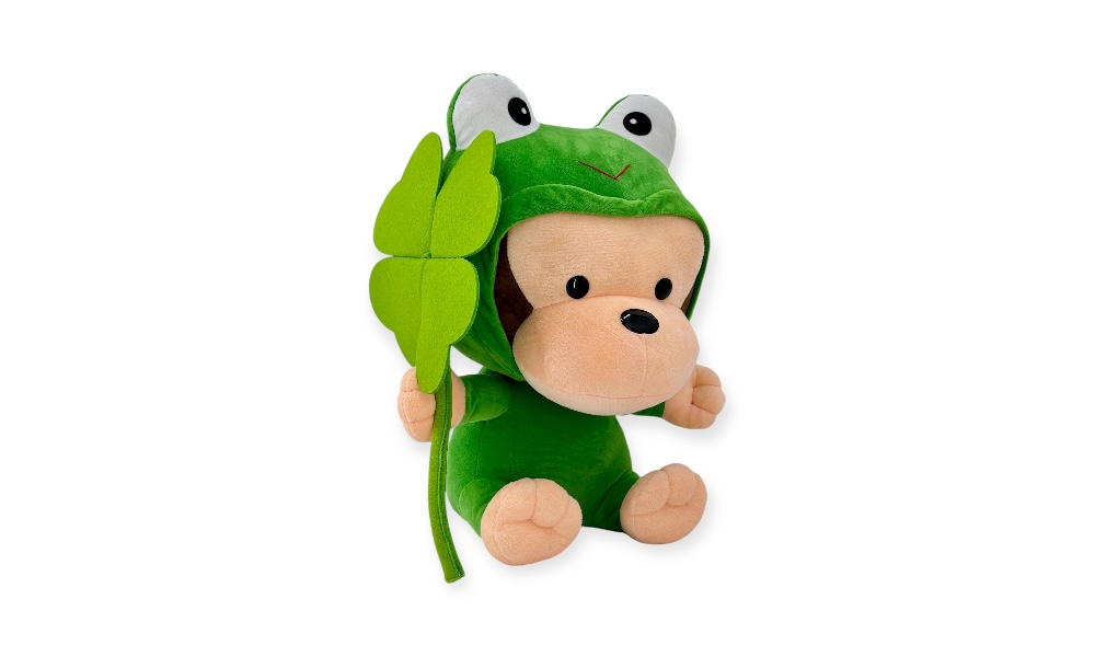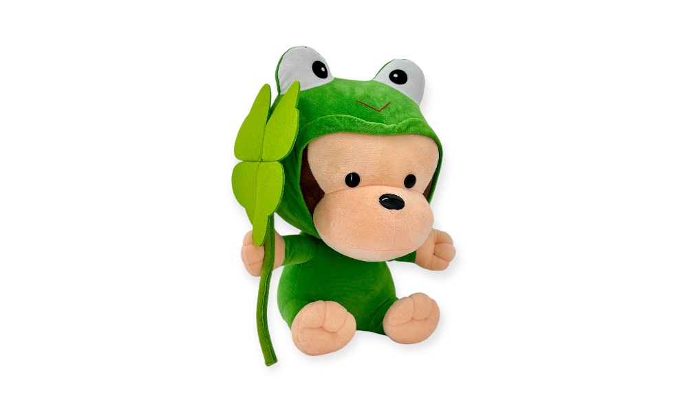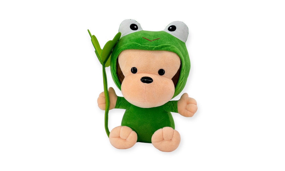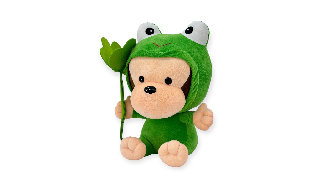 這款名為「ㄚ搞」的猴子玩偶,由歐比邁公司精心設計製造,特色在於其青蛙變身造型,為傳統猴子玩偶增添了獨特的趣味。這款玩偶的尺寸為18寸,內部填充了台灣高品質充棉,確保了其柔軟和舒適的觸感。